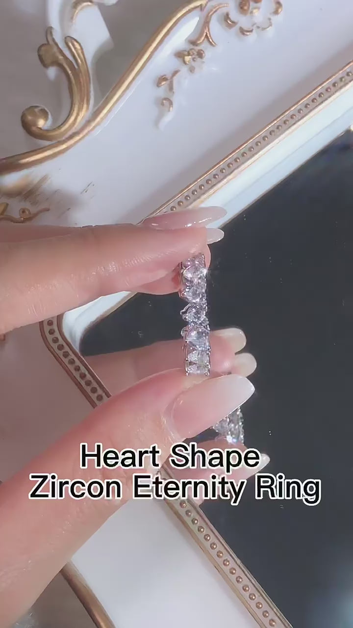 Anillo Eternity en Plata 925 con Zirconias en Corte Corazón