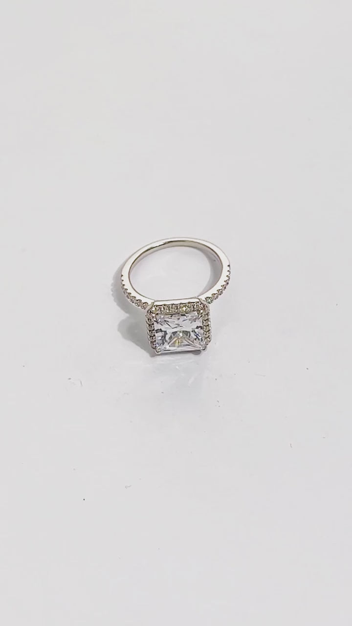 Anillo Halo en Plata 925 con Zirconia Cúbica en Corte Cuadrado