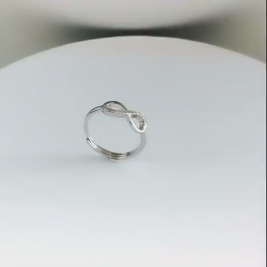 Anillo en forma de Infinito, está elaborado con una exquisita combinación de materiales Plata 925 y Zirconias. Su tamaño ajustable entre talla 5 y 10, lo que lo hace adecuado para una variedad de clientes.